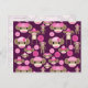 Niedliche Girly Pink Sock Affen Girls auf Lila Postkarte