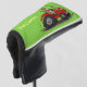 Niedliche glückliche Kuh, die einen roten Traktor- Golf Headcover