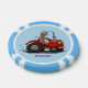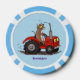 Niedliche glückliche Kuh, die einen roten Traktor- Pokerchips