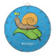 Niedliche, glückliche Schnecke auf einer Cartoon-I Dartscheibe