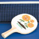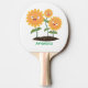 Niedliche glückliche Sonnenblumen lächelnd Cartoon Tischtennis Schläger