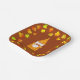 Niedliche gnome und farbenfrohe Herbstlaube auf Terracotta Hintergrund Erntedank Party Plate. Text kann personalisiert sein. Ideal für jede Veranstaltung während der Herbstsaison. Text kann durch Monogramm oder Ihren Text ersetzt werden. Genießen Sie die Farben dieser schönen Saison.