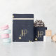 Elegante und niedliche goldene Sterne verpacken Papier mit dunkelblauem Hintergrund. Personalisieren Sie diese Geschenkpackung für jeden Anlass mit einem Monogramm, einem Namen oder einem beliebigen benutzerdefinierten Text.