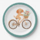 Niedliche Goldendoodle Dog Biking Spring Blumen Pappteller
