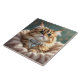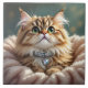 Eine hübsche Kachel mit einer anmutigen Abbildung einer schönen flauschigen Tischkatze, die einen Diamantkragen mit aquamarinem Hintergrund verziert.