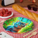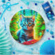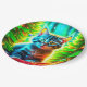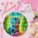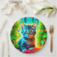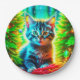 Niedliche graue Kätzchen mit Weihnachtsbäumen Pappteller