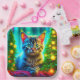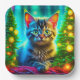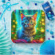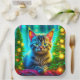 Niedliche graue Kätzchen mit Weihnachtsbäumen Pappteller