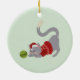 Niedliche graue Katze mit Weihnachtshut Keramik Ornament