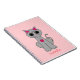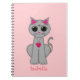 Niedliche graue Katze und bearbeitbarer Name auf hellrosa Notebook. Ideal für Katzenliebhaber.