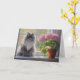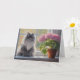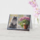 Niedliche graue persische Katze mit rosa blühende Karte