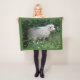 Diese phantastische Fleecedecke zeigt ein Foto eines niedlichen, flauschigen Schafes. Die Schafe sind von wilden Blume und langen Gras umgeben und essen gierig ein paar Blätter. Es hat einen dicken weißen Wollmantel und eine niedliche schwarze Nase.