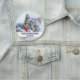 Namensschild mit einem niedlichen Weihnachtsfoto einer grauen Tabbykatze, die spielerisch eine rote Weihnachtsmannmütze beißt. Seine großen, flauschigen Pfoten machen dieses Foto besonders reizvoll.