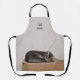 Niedliche graue Tischkatze, die auf einem Karton schläft, Katzenmutter kocht Schürze. Schöne, gemütliche, schläfrige Haustierkunst für Katzenliebhaber Küchenzubehör. Künstlerische, trendige, bezaubernde Kitty. Chic, modern, stilvoll. Bildrecht Marg Seregelyi Fotografie.