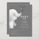 Wasserfarbene Elefantenbabwdusche Einladung. Neutral. Grau.