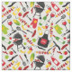 Niedliche GRILLEN Theme Grill Kebab Sausage Mustard Ketchup Kitchen Fabric