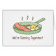 Ein niedliches Doodle eines Speckstückes und gebratenes Ei, das auf einer Bratpfanne mit einer lustigen Wortunterschrift "We Sizzling Together" steht! Perfekt als ein Valentinstag Gruß!