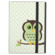 Stilvoller kundenspezifischer Foliokasten für ipads kennzeichnet eine süße vektorillustration einer Eule, die auf einem Baumast auf einem Tupfenmusterhintergrund gehockt wird.