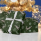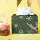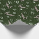 Feiern Sie den Urlaub, während Sie Geschenke mit diesem hübschen Winter grünen Weihnachtsgeschenk verpackt. Dieses Urlaubspapier weist einen dunklen und festlichen grünen Hintergrund mit einem Muster auf, das fliegende Rentiere und verschiedene Arten von Schneeflocken aufweist.