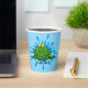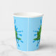 Niedliche Green Frog Design Paper Cups mit anpassbarem Text und Hintergrundfarbe. Der blaue "Splash" kann auf Wunsch entfernt werden.
