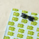 Niedliche grüne Frösche auf blauem Hintergrund.