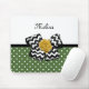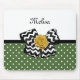 Nichts sagt gürtig wie dieses niedliche, grün-weiße Polka Dot Mousepad mit einem trendigen Zickzack Bogen in Schwarz und Weiß und einer schicken, gelben Band-Rose. Personalisieren Sie, indem Sie den Namen Ihrer Teenager Mädchen zu diesem grünen und gelben Retro trifft moderne Design. Flachdruckbild, KEIN tatsächliches Rosettenband und Bogen.