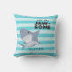 Niedliches Kissen für Jungen. Illustration eines Haifischs, der in die Luft mit einem Lächeln auf seinem Gesicht springt. Der Hintergrund ist blaue Streifen. Der oben genannte Text sagt, dass "Sie sind JAWSOME." Fertigen Sie dieses Produkt besonders an, indem Sie den Namen Ihr Kindes an der Unterseite des Produktes addieren. Die Rückseite des Kissens ist ein festes Blau mit einem Bisskennzeichen auf der oberen rechter Ecke.