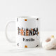 Niedliche Halloween individuelle Name Tasse für Freunde. Das Design enthält den Text "Friends" in schwarz-orange Motiv Typografie mit orangefarbenen, gelben und schwarzen Halloween-Elementen. Macht das beste personalisierte Geschenk für den besten Freund. Perfekt, um sie sich ganz besonders zu fühlen, ihr Vertrauen zu stärken und ein einzigartiges und bequemes Geschenk zu bekommen! Wir haben sogar Sweatshirts, Schlüsselanhänger und Shirts mit dem gleichen Design in unserer Kollektion. Bitte Karo es aus. Frohe Halloween!