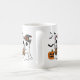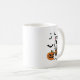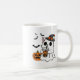 Niedliche Halloween-Katze in Geisterkostüm trinken Kaffeetasse