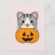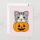 Niedliche Halloween-Katze in Kürbislaterne Postkarte
