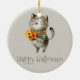 Niedliche Halloween-Katze mit Pumpkin | Keramik-Or Keramik Ornament