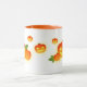 Diese Orangenkombi-Tasse mit einem Thema zu Halloween bietet niedliche, gemeißelte Kürbis in verschiedenen Größen.