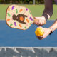 Dieses phantastische Pickleball-Paddel zeigt ein grafisches Bild einer niedlichen kleinen braunen Ratte mit rosa Ohren Schwanz und Füßen. Die Ratte hält einen orangefarbenen Kürbis zwischen ihren Pfoten. Die kleine Ratte ist von einer Sammlung von grünen, lila und orangefarbenen Süßigkeiten umgeben. Dieses Design ist perfekt für jeden Ratten Liebhaber oder Besitzer dieses Halloween.