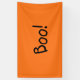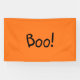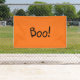 Boo schwarz und orange lustige niedliche handgeschriebene Typografie Halloween Dekorationsbanner, Zeichen. Schwarzer Text, solider orangefarbener Hintergrund.