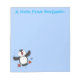 Niedliche Happy-Fying-Puffsängerin mit blauen Cart Notizblock