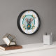 Eine niedliche glückliche Ratte, die eine Blume auf einer nummerierten Uhr hält. Ideal für Kinder.