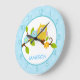 Super niedliche Uhuhr mit blauer und gelber Uhr mit hellblauer Punktgrenze.