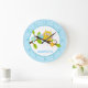 Niedliche Happy Tree Owls Round Wall Clock (blau) Große Wanduhr