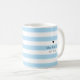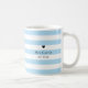 Das perfekte "etwas Blau" für die Braut zu sein! Personalisieren Sie diese klassisch blaue Tasse mit ihrem Namen und ihrem Hochzeitsdatum. Tasse hat klassische, pulvblaue Streifen und winzigen Herzakzent. Eleganter schwarzer Schriftart rundet das Aussehen ab!