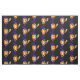 Stoff mit einer niedlichen Hexe mit einem großen lila Hexenhut. Ihre schwarze Katze ruht oben auf ihrem Kopf. Sie hat langes orangefarbenes Haar und trägt einen Besen. Niedliche Cartoon-Illustration perfekt für Halloween.