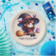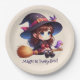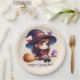Niedliche Hexe mit 2 Vögeln, Halloween Pappteller