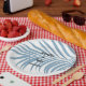 Niedliche Hochzeit mit Palmenblätterblättern Pappteller
