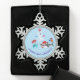 Ornament mit niedlichem Ozean Weihnachtsdesign. Das Design besteht aus einem niedlichen Hai, der eine Weihnachtsmannmütze trägt und Weihnachtsgeschenke trägt, niedliche grüne Meeresschildkröte und niedliche rote Krabbe. Die Einrichtung wird durch eine kleine, weiße Koralle ergänzt, die als Weihnachtsbaum angelegt wurde und mit blauen, rosa und lila Muscheln und roten Seestern geschmückt ist. Das Design ist anpassbar und Sie können den Text personalisieren.