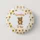 Ein niedlicher Teddybär, der wie eine Honigbiene gekleidet ist. Zwei Bienen fliegen über dem Text vor einem Hintergrund hübsch braun zentrierter gelber Blumen. Alle Texte können einfach auf Ihre Informationen geändert werden.