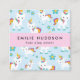 Niedliche, lustige und bezaubernde Visitenkarten mit Einhörnchen und Blume. Modernes und trendiges Design, perfekt für Kinder, die spielen, spielplätze, aktivitäten center, Kinderbetreuung, Kinderbetreuung, Babysitter und Kindermädchen.