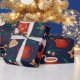 Dieses bezaubernde Weihnachtsgeschenk-Wraps mit einer dunkelblauen Hintergrundfarbe mit süßen Grafiken von heißer Schokolade, Pfefferminzsticks, Weihnachtsgebäck, Weihnachtsschmuck, Lebkuchen und Mistleton. So niedlich für das Weihnachtsgeschenk eines Kindes, oder für ein Weihnachtsgeschenk für Familie und Freunde.
