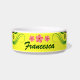 © Sunny Mars Designs. Dieses niedliche, bezaubernde kleine Haustierfutter oder Wasserschüssel bietet eine gelbe, rosa und grüne Blumenmuster von tropischen Hibiskus Blume. Personalisieren Sie es, indem Sie den Namen Ihres Hundes oder Ihrer Katze hinzufügen.