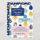 Niedliche Ostereier-Jagdeinladung mit einem Brunch, um Ihrem Ostereierjagdtext auf Feldern auf blau, mint und pink zu folgen, gegen ein Muster von gelben Küken und bunten Ostereiern. Pastelleierjagd und Brunch Einladung mit bemalten Ostereiern und Babyhühnern in Rosa, Gelb, Minze und Dunkelblau.