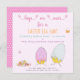 NewParkLane - Personalisierte Ostereier-Jagd Einladung, mit "Hop on over" in einer niedlichen Typografie mit Schmetterlingen, zwei niedliche Osterküken schraffiert einfach aus ihren Muscheln in Pastellrosa und lila und eine in Weich-Blau. Mit niedlicher Orange und rosa Schmetterling und niedlichen kleinen pastellfarbenen Blume. Die Rückseite weist ein scharfes, rosa und weißes Punkt auf. Einfache Anpassung in Zazzle mit eigenem Text für ein personalisiertes Design. Alle Textstile, Farben und Größen können an Ihre Bedürfnisse angepasst werden. Karo diese Auflistung für passende Elemente aus. Haben Sie spezielle persönliche Designwünsche? Kontaktieren Sie mich bitte!