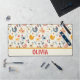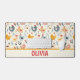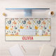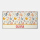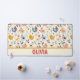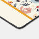 Personalisierte, niedliche Hühner im Bauernmuster auf einer hellgelben Tischmatte.