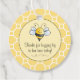 Dieses bezaubernde, runde Hummelanhänger-Fvor-Tag zeigt eine niedliche und fröhlich schwindelerregende Gelb- und Schwarzbiene mit schwarzer Prägung. "Danke, dass du heute hier lebst!" Text, den du für deinen Anlass personalisieren kannst, einen schwarz gepunkteten Scroll-Akzent und ein goldgelbes Wabenhintergrundmuster.